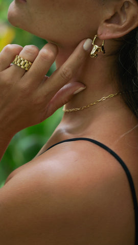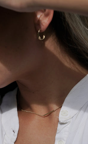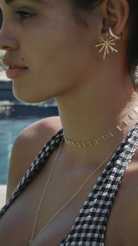Twisted tiny hoops are perfect little add ons for your beach attire. Available in Gold. Wear them with Gold Bold choker & Ma'alahi Choker.